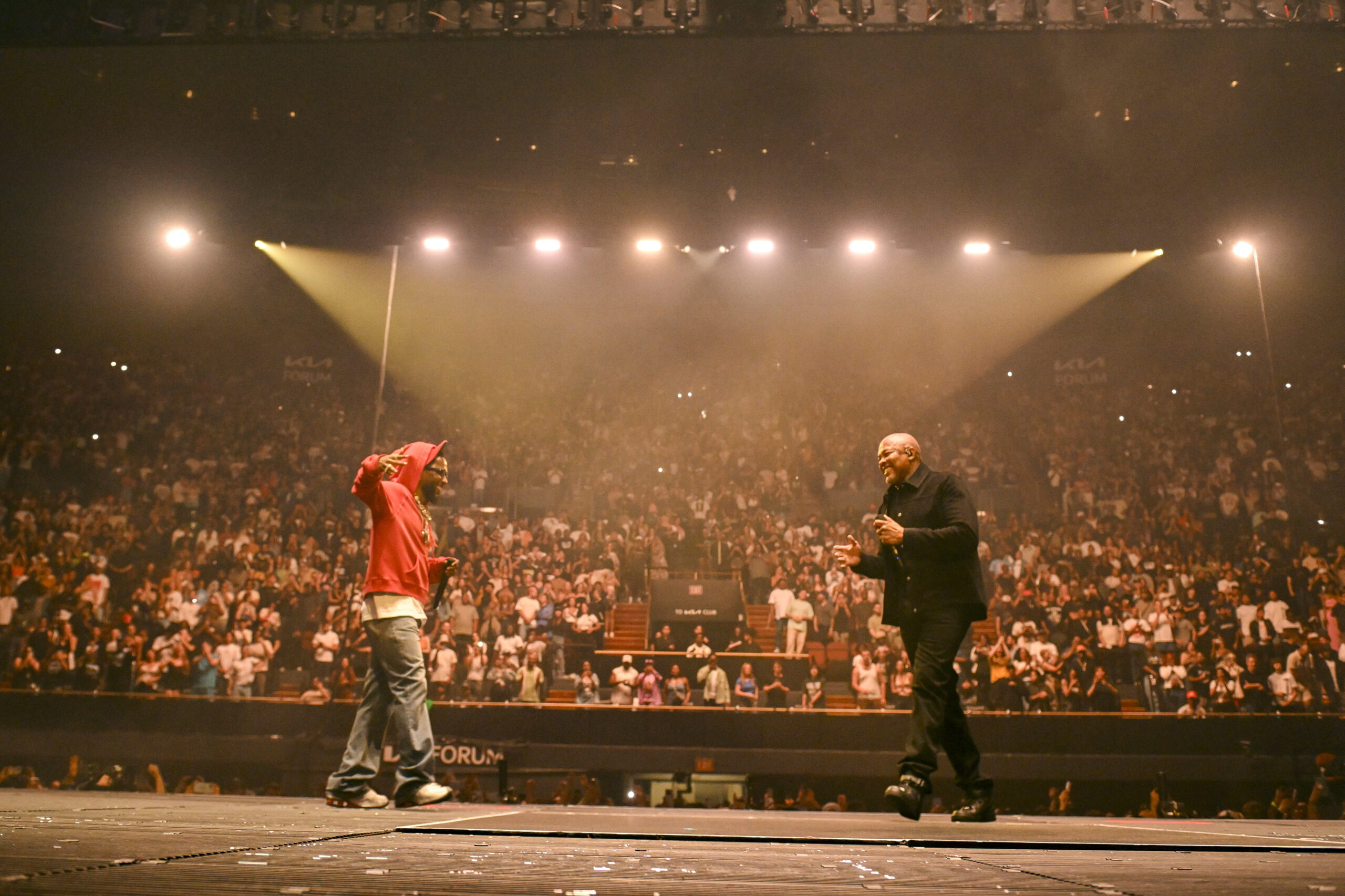 The concert’s title is a reference to Lamar’s wildly popular Drake diss track, “Not Like Us,” introduced by legendary rapper/producer Dr. Dre. Hip-hop fans have declared “Not Like Us,” cemented Kungfu Kenny’s place as “winner” with the song becoming a huge radio success as a result from the feud. Since Lamar dropped his verse on Metro Boomin and Future’s track “Like That” back in March, the beef between him and Drake has finally come to an end. He performed the song five times in a row ultimately bringing up artists from different gangs to unite in a call for harmony and peace as both sides have suffered from violence and trauma within their respective communities.